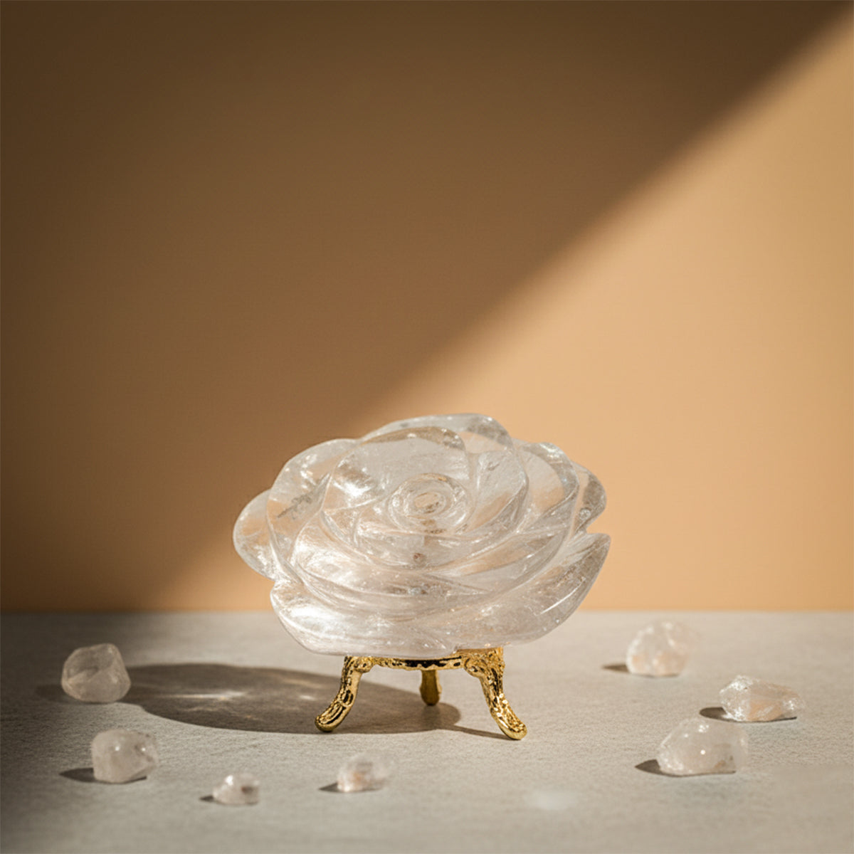 Shaped into a delicate flower — a symbol of renewal, blossoming, and divine feminine energy — this piece elevates the crystal’s frequency and harmonizes your environment. Whether used during meditation, placed on your altar, or gifted with intention, the Clear Quartz Flower serves as a beacon of light, clarity, and mindful energy.
