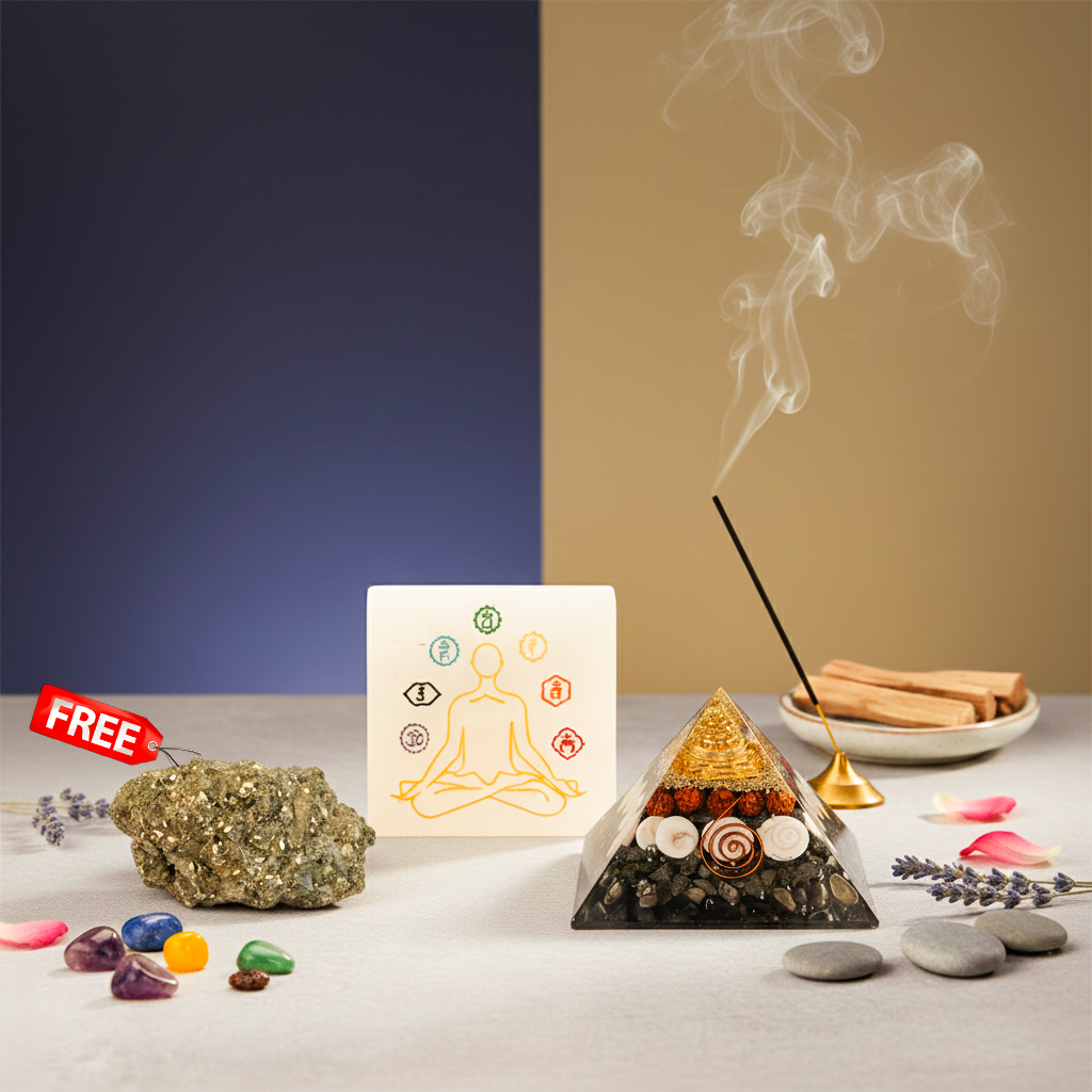A divine fusion of Pyrite (Stone of Prosperity), Gomti Chakras (Sacred Symbol of Fortune), and a Selenite Charging Plate, this set is designed to attract abundance, dissolve negativity, and balance energy in your space.