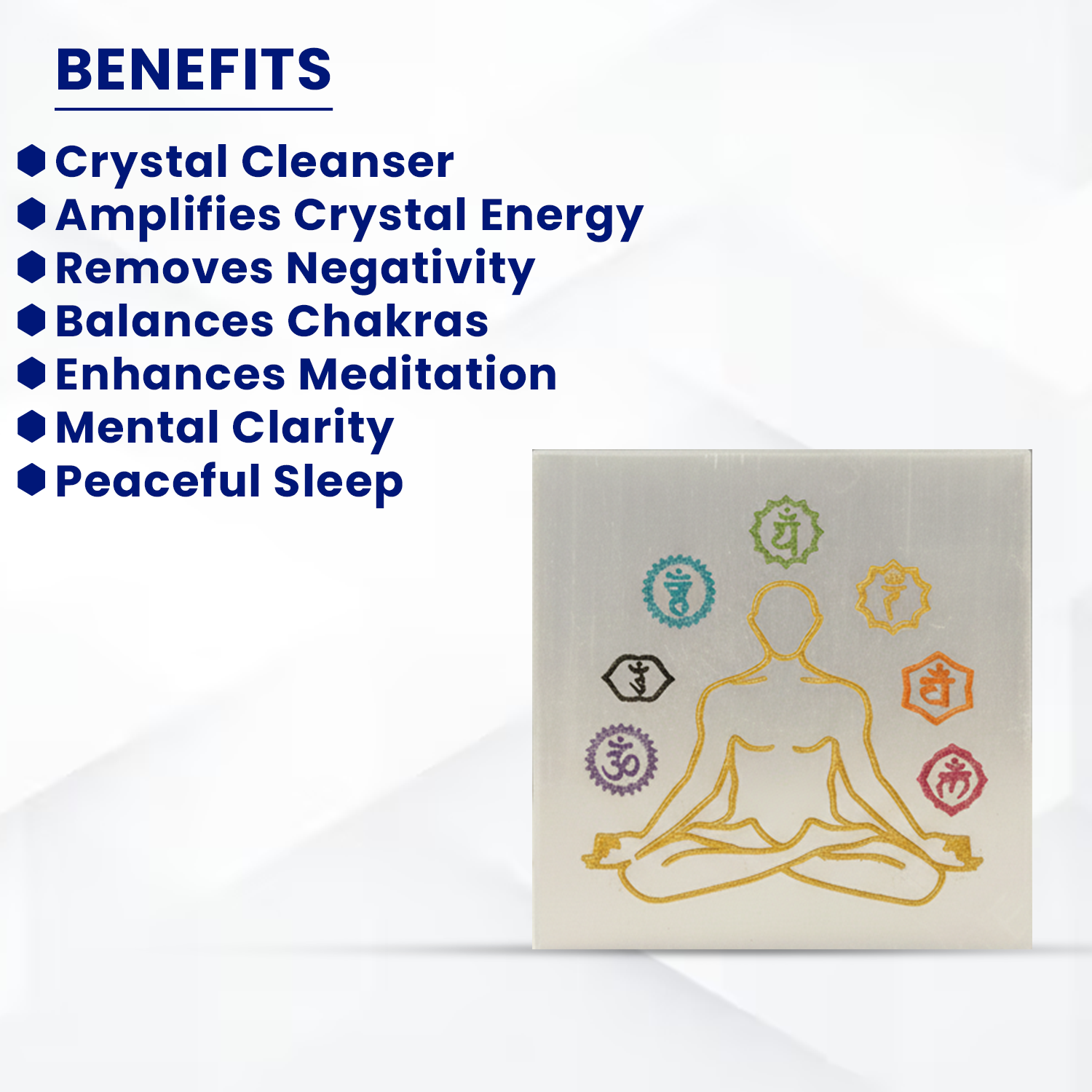 Selenite Plate – Cleanses negativity, charges crystals & uplifts energy.