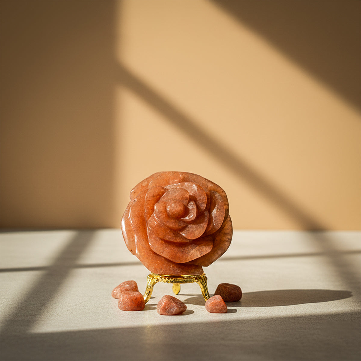 Known for its rich hues ranging from burnt orange to deep red, Red Aventurine is deeply connected to the Root Chakra (grounding and strength) and the Sacral Chakra (creativity and joy). It empowers you to overcome fear, spark motivation, and take bold, inspired action. Whether you’re facing emotional blocks, creative stagnation, or a new phase of life, this flower-shaped crystal serves as a daily energetic anchor — helping you stay rooted while stepping confidently into your power.